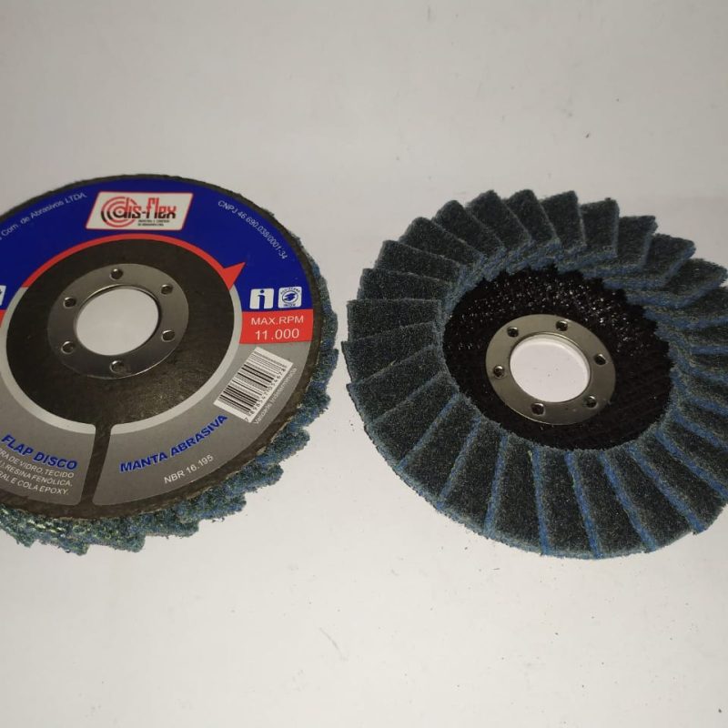 O Disco Flap Manta Abrasiva foi desenvolvido para a limpeza, polimento e acabamento de superfícies planas e cantos em peças de aço, aço inox, alumínio e metais ferrosos e não ferrosos. Possui grande poder de remoção de oxidação, incrustações, carbonização residual (carepa) de solda e até cortes de plasma.