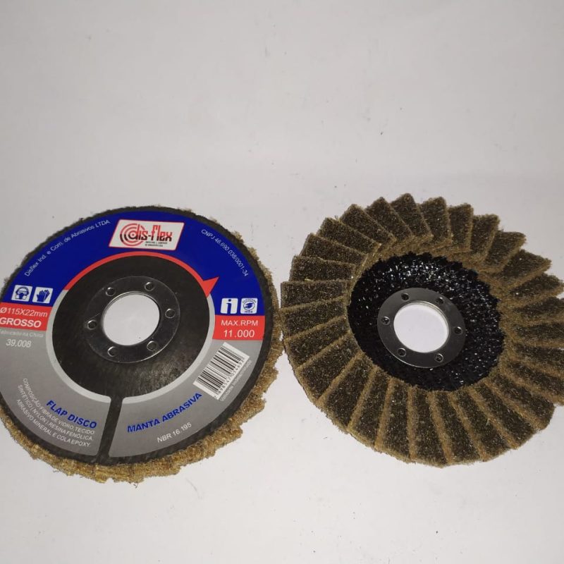 R$41,00Disco 2 em 1 para aço (carbono) e aço inoxidável, O disco flap manta GROSSO é a prefeita solução para remoção de ranhuras das superfícies a serem usinadas.